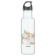 Water bottle with fancy watercolor white pumpkins with accents of faux gold glitter. Surrounded by green leaves and pink wild flowers.