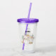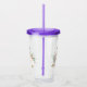 An acrylic tumbler with fancy watercolor white pumpkins with accents of faux gold glitter. Surrounded by green leaves and pink wild flowers.
