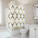 Elegant gold tones modern trendy ikat style quatrefoil seamless pattern over white background. Top and bottom border with smaller print of the same pattern. Size of the print is adjustable.