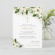 White and Gold Watercolor Floral Religious Cross Invitation