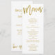 White and gold wedding menu custom invitations with gold foil effect (faux, printed as an image) text printed on white background