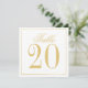 features title "Table" in gold elegant script font style and table number in gold serif font style with gold border on white background.