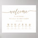 Welcome your guests with this elegant white and gold wedding welcome sign with timeline! Ability to customise sign with your details and your own wedding timing. If needed, you can select customise further using editing tool and re-arrange or move icon images and their text to suit you timeline needs by selecting images, or their text on editor screen and dragging them to where you like. Modern hand written calligraphy details and timeline icons in faux gold foil. Rest of text in golden hues. Stylish, simple and clean design. Easy to frame or spray glue/staple to inexpensive MDF for display. Dimensions of sign in demo photo with stand: 24" x 18"