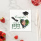Create unique white and green graduation napkins for the class of 2025 graduate with a heart-shaped photo (use the template to upload your picture), Congrats saying, and grad's cap and diploma illustrations. It's easy to change the background colour inside the design tool to match your school colours. Please, personalise with the graduate's name and surname, upload a custom photo, and type a year before ordering.