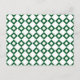 A bold, graphic pattern of interlocking green and white diamond shapes. The green diamonds each contain a small white diamond making white the dominant colour of the original design.