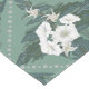 Transform your space with the timeless elegance of this botanical table runner, featuring a rich cluster of dark green leaves topped with striking white datura flowers. The intricate design is framed by a sophisticated grey border in a classic diamond pattern, adding depth and structure. Perfect for creating a serene yet refined atmosphere in any room. Datura is a native wildflower of the southwest.