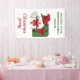 Destei's original festive design of two gift boxes together with a red and white Santa hat that has a Christmas Holly on it. The present box designs are white and green and they both have a beautiful red bow on them. There are also two personalizable text areas.