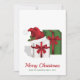 Destei's original festive design of two gift boxes together with a red and white Santa hat that has a Christmas Holly on it. The present box designs are white and green and they both have a beautiful red bow on them. There are also two personalizable text areas.