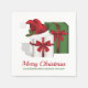 Destei's original festive design of two gift boxes together with a red and white Santa hat that has a Christmas Holly on it. The present box designs are white and green and they both have a beautiful red bow on them. There are also two personalizable text areas.