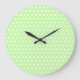 White and Green Polka Dot Pattern. Spotty. Large Clock
