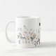 White and grey flowers form a border at the bottom of this beautiful coffee mug. Very sweet and feminine.