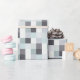 This wrapping paper features squares in different shades of white and grey in a pixelated pattern.