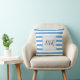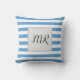 A cool light blue and white striped pattern and a grey rectangle with a monogram. Click personalise to change the monogram to your liking.