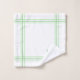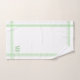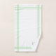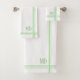 This elegant white towel set features green stripes along with customisable initials simply placed on the corners.