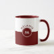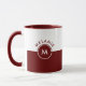 White and maroon split-screen monogram mug