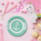 White And Mint Nautical Anchor & Stripes Paper Plate