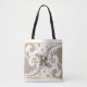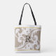 White and Mushroom Flourish Gold Border Monogram Tote Bag