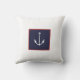 Nautical anchor throw pillow in navy blue and red on a white background.