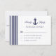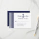 White and Navy Blue Nautical RSVP Card with Rose Gold Stripes designed by Colourful Designs Inc. Copyright 2013-2017.