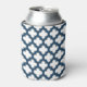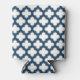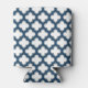 White and Navy Blue Trellis, Lattice, Quatrefoil Can Cooler