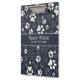 White and navy paw print pattern clip board, perfect for any animal lover or business.