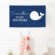 This cute banner features our little white whale on a navy blue background. It looks best on a 3" x 5" banner size. This banner is designed with TWO LINES of text that you can customise. I have also designed this with one line of text in another listing. This banner features a smaller whale, but let's you add more text. <div style="text-align:centre;line-height:150%">