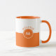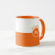 White and orange split-screen monogram mug