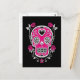 White and Pink Sugar Skull with Roses on Black Postcard