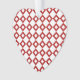 A bold, graphic pattern of interlocking red and white diamond shapes. The red diamonds each contain a small white diamond making white the dominant colour of the original design.