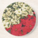 White and Red Poinsettias I Holiday Floral Coaster