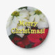 White and Red Poinsettias II Christmas Holiday Paper Plate
