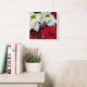 White and Red Poinsettias II Christmas Holiday Square Wall Clock
