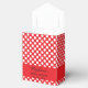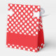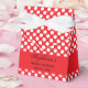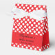 White and red polka dot bridal shower favour box. White polka dots on red background and a red band with your custom text.