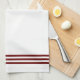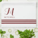 This simple, elegant kitchen towel will add a personalised touch of style to your kitchen! Dark red stripes and your initial in modern script appear on a white background.