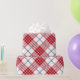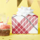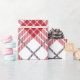 Another plaid geometric pattern. White is a dominant colour with red as a complimentary colour than accented with a grey stripe as an accent.