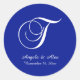 White and Royal Blue Decorative Script Monogram T Classic Round Sticker