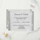 This beautiful design, called White and Silver Snowflake Wedding, has a pretty winter inspired design. The background is a light grey with darker grey on the edge. There are silver and white snowflakes scattered across the design. On the front of the invitation, there is a place for your photo. This would be perfect for a winter wedding or if you are looking for a winter wonderland style. This set has invitations, save the date cards, response cards, thank you cards, table number tent cards, envelope seals, wine labels, binders, return address labels and many more day-of wedding stationery pieces, favours, and gifts available. Use the envelope seal stickers for any of your DIY gifts - these are available in both large and small sizes! All elements are printed on our high quality products, they do not include any real gold, jewels, embossing, or other textile elements. All designs are copyright Noteable Expressions, Inc. All rights reserved.