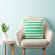 White and Teal aqua blue green:Striped Cushion