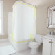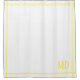 This elegant white shower curtain features yellow stripes along with customisable initials simply placed on the corner.