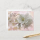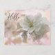 A postcard with a photograph featuring an apple tree branch displaying its beautiful white apple blossoms.