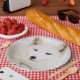 White arctic fox in snow paper plate