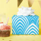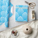 An Elegant white art deco geometric pattern over a light-blue background that is changeable.