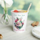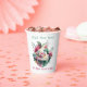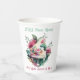 Piano recital reception paper cups, done in white, with watercolor artwork of a white baby grand piano and pink flowers. Personalise the colourful custom text for your music themed recital or reception event. Matching paper plates and napkins are available.