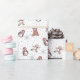This gender neutral wrapping paper features an adorable hand-drawn pattern of winter stuffed animals (reindeer, teddy bears and penguins) among tiny yellow stars and snowflakes, all against a white background. Perfect for baby's first christmas, winter baby shower, winter birthday, etc.