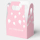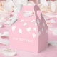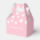 White balloon pattern on pastel pink background. Custom party favour boxes. Edit text to customise. Great for personalised party decor.