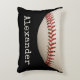 White Baseball Sports Team Personalised with custom Name Matching blankets available. Design by Sandy Closs. Personalised pillow, with name or monogram initial and Baseball picture, black background. A great gift for your Baseball teammate. Sports theme pillow for your family and friends. Cool decoration for sports-themed rooms. Great for everyone boys girls men women and kids.
