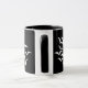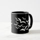 This black and white ringer mug features a collection of simple images of bats flying together in a cloud pattern. The bats are white and the background is black. Kids are sure to love this cute design.
