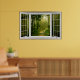 The artwork creates the illusion of having a bay window overlooking a forest path. The illusion makes you feel as though you're looking out at a beautiful forest with rays of sunshine between the trees.