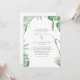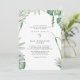 White background bride parents list tropical wedding invitation. Tropical foliage.
