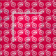 Cyclists will love this cycling themed fabric. Bright pink background with rows of white bicycles.